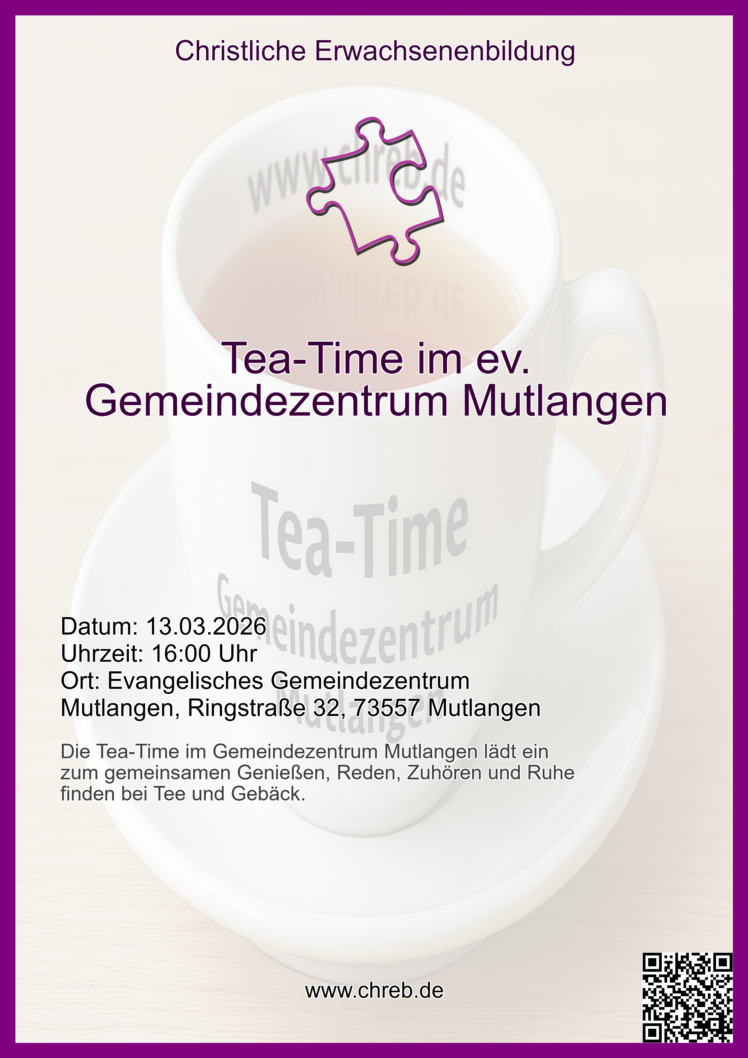 | 15.05.2026 - 16:00 Uhr | Tea-Time im ev. Gemeindezentrum Mutlangen | Solange Vorrat reicht |